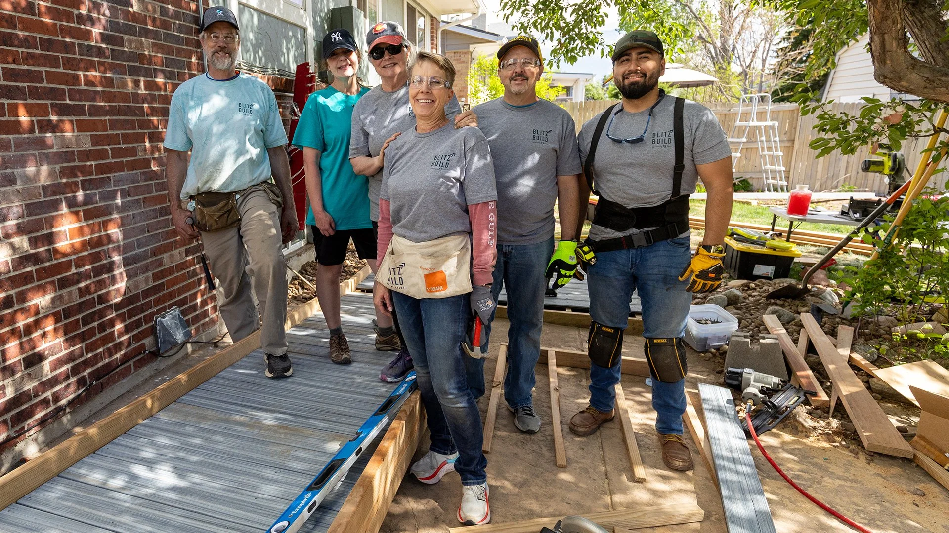 A crew of CHFA staff volunteers assembled to support Home Builders Foundation (HBF) in its annual Blitz Build in May. The Blitz Build gathers volunteers each year to build home wheelchair ramps for people living with disabilities. HBF is a nonprofit based in Centennial whose mission is to build independence, provide opportunities, and elevate lives for individuals and families with disabilities. Home modifications organized through the Blitz Build help to enable greater access, safety, and mobility for residents.